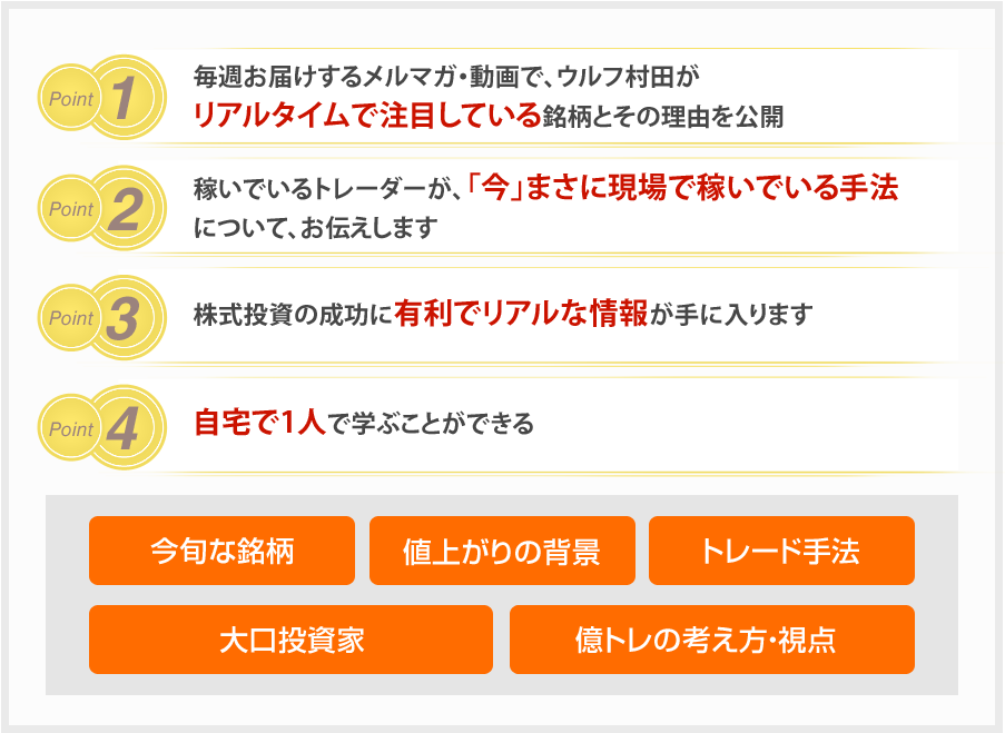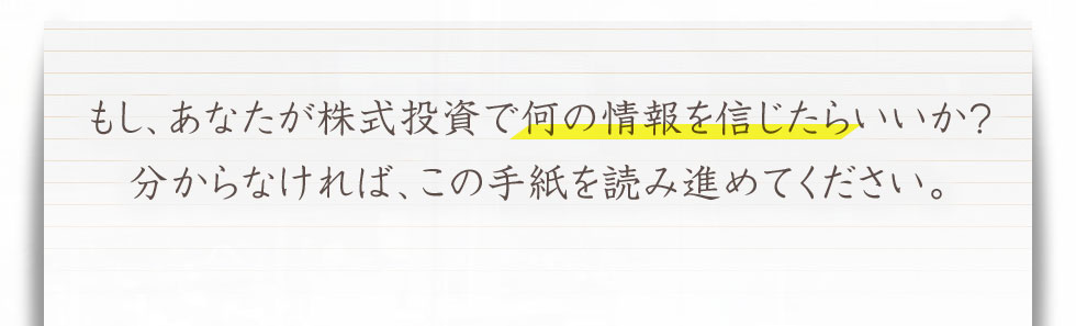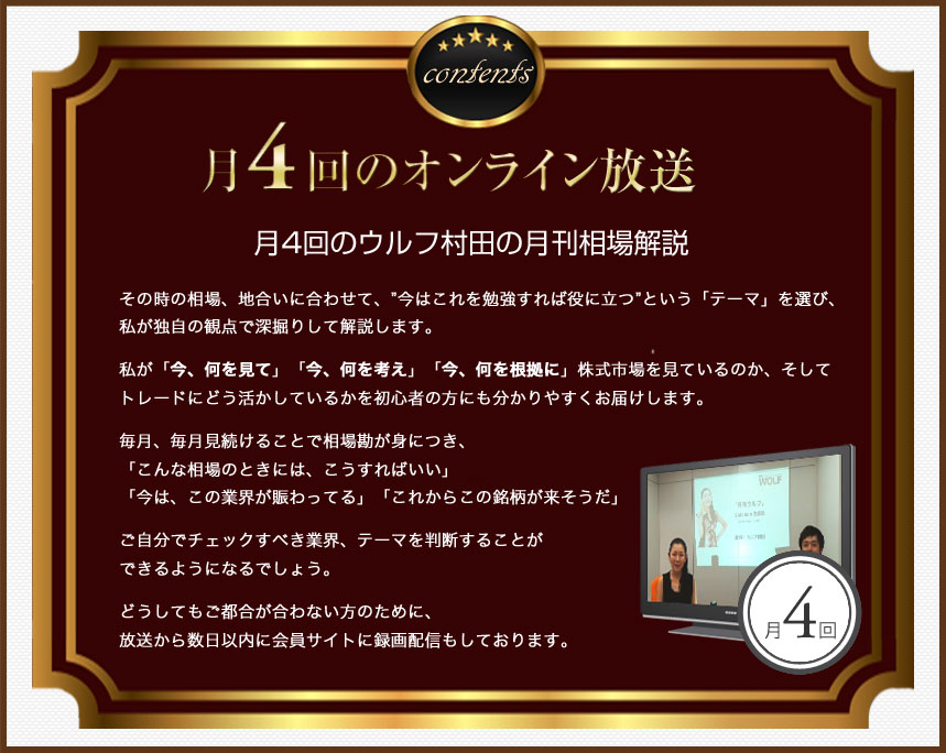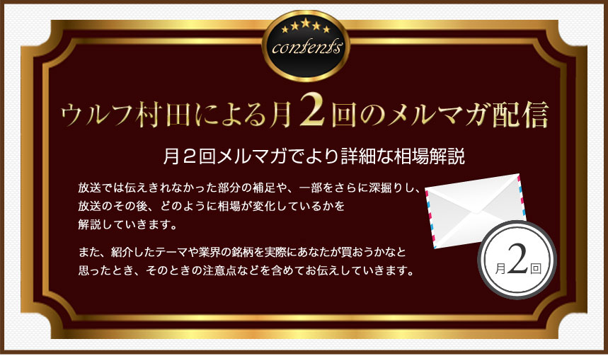 せっかくご参加いただくあなたには、一般の投資家が決して知ることができないような情報も、放送の中でお伝えしていきたいと思います。