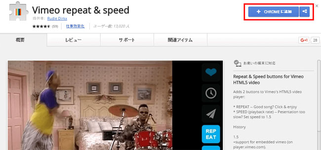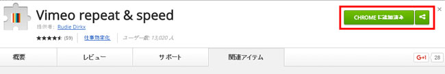 ◆「Vimeo repeat & speed」をGoogle Chromeに追加する